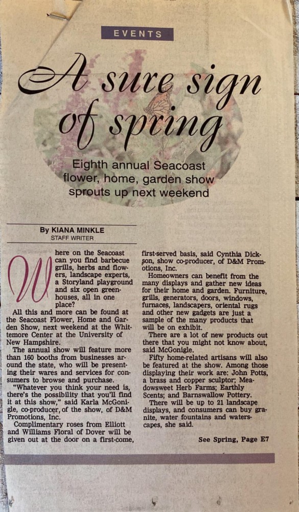 Article on the 8th annual Seacoast Flower, Home and Garden show in 1999.