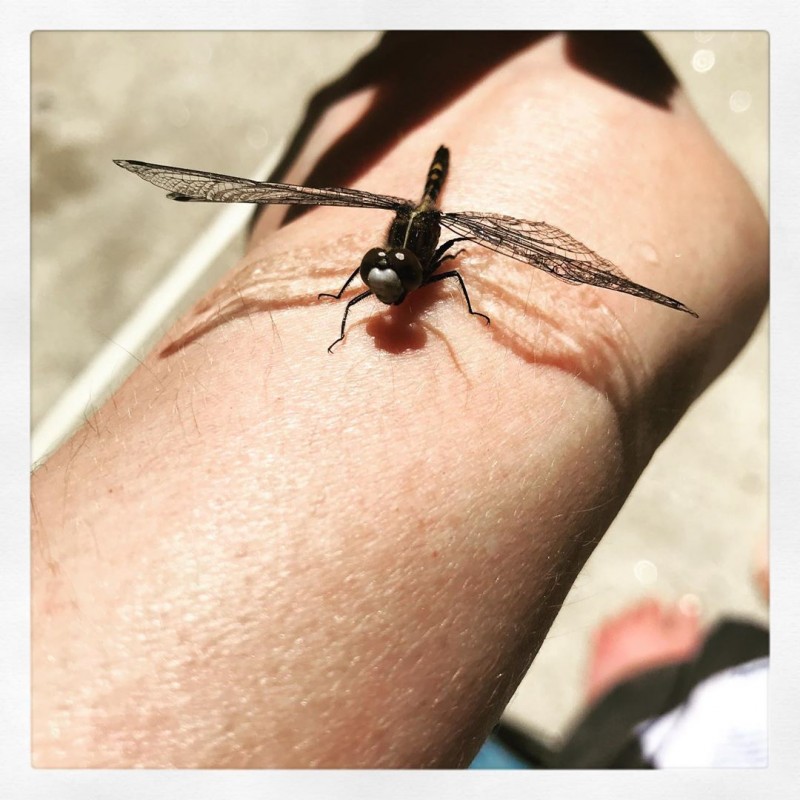 …this little guy keeps flying into the pool…i think he just wants my attention lol. #dragonflylady