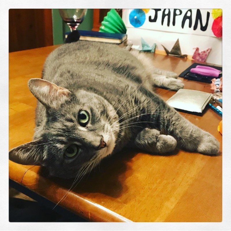 …luna has claimed the table as her personal lounge area…