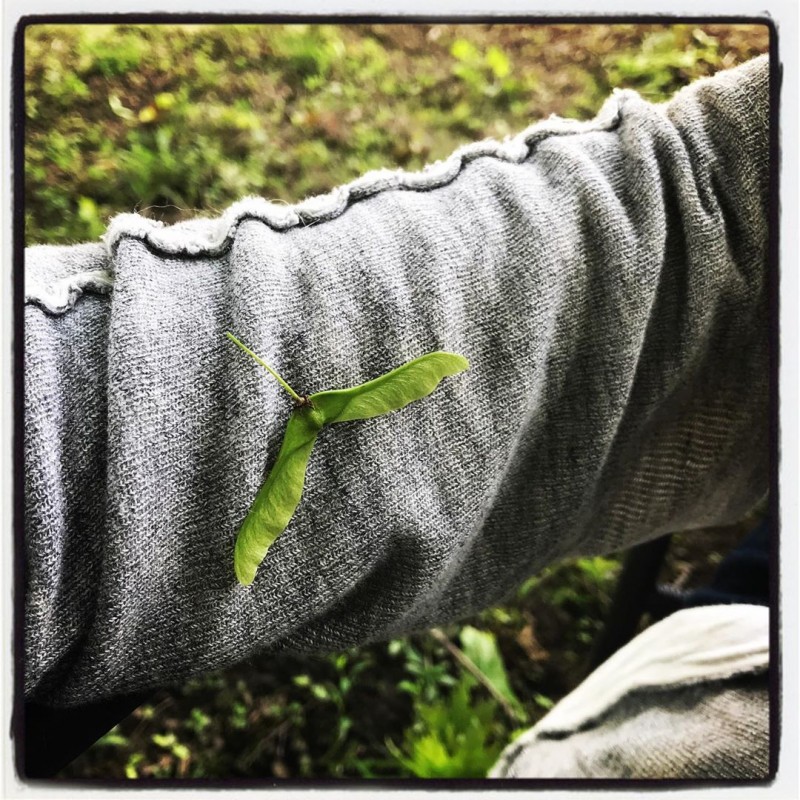 …enjoying some quiet time with my backyard trees. Looked down and saw nature had adorned my outfit. Guess i needed some more color!